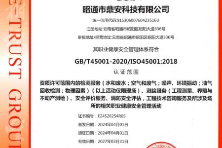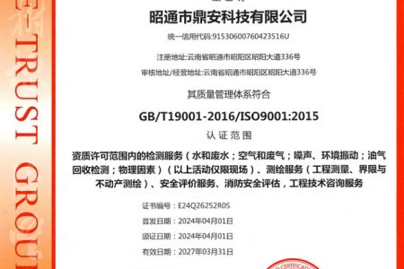 2003年11月10日,昭通市鼎安科技有限公司成立,初始主要從事第三方安全工程技術(shù)服務(wù),經(jīng)多年運營,發(fā)展為多專業(yè)綜合科技平臺,為社會提供多種專業(yè)技術(shù)服務(wù)工作。 現(xiàn)公司注冊資金為1200萬元,公司法定代表人:毛衛(wèi)旭。公司主要業(yè)務(wù):安全評價、安全標準化評審、安全工程技術(shù)服務(wù);環(huán)境監(jiān)測、職業(yè)衛(wèi)生檢測、檢驗;法律訴訟及非訴訟服務(wù);司法鑒定、固定資產(chǎn)投資項目節(jié)能服務(wù);工程咨詢;工程測量測繪;安全教育培訓(xùn)等。是安全生產(chǎn)服務(wù)、安全教育培訓(xùn)機構(gòu),也是環(huán)境監(jiān)測和職業(yè)衛(wèi)生服務(wù)機構(gòu),同時也是綜合的檢測檢驗、綜合科技平臺服務(wù)機構(gòu)。多年來為公、檢、法、司、軍、警、海關(guān)、仲裁、安監(jiān)、工礦商貿(mào)企業(yè)、社會團體及個人提供多專業(yè)技術(shù)服務(wù)。